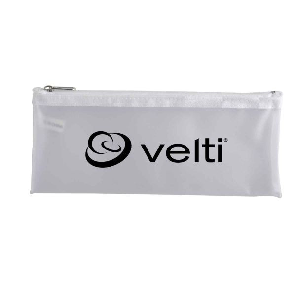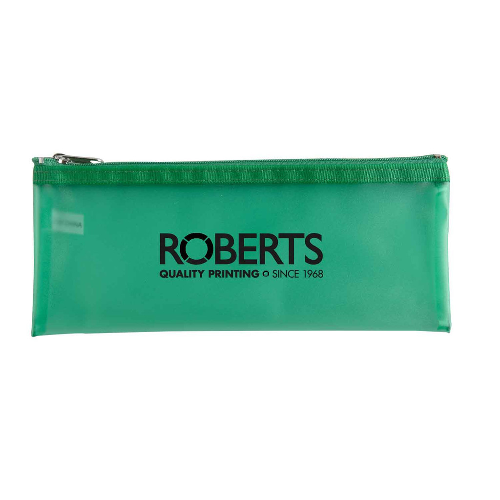 PVC pencil pouch stores multiple pencils, pens, erasers and other school supplies