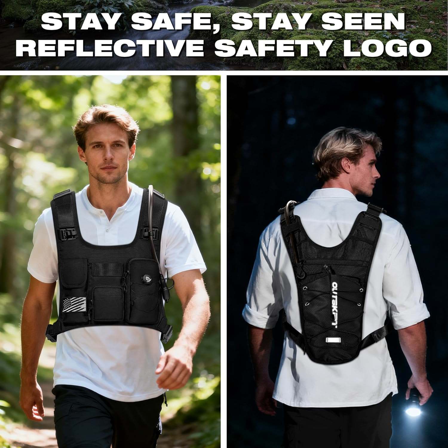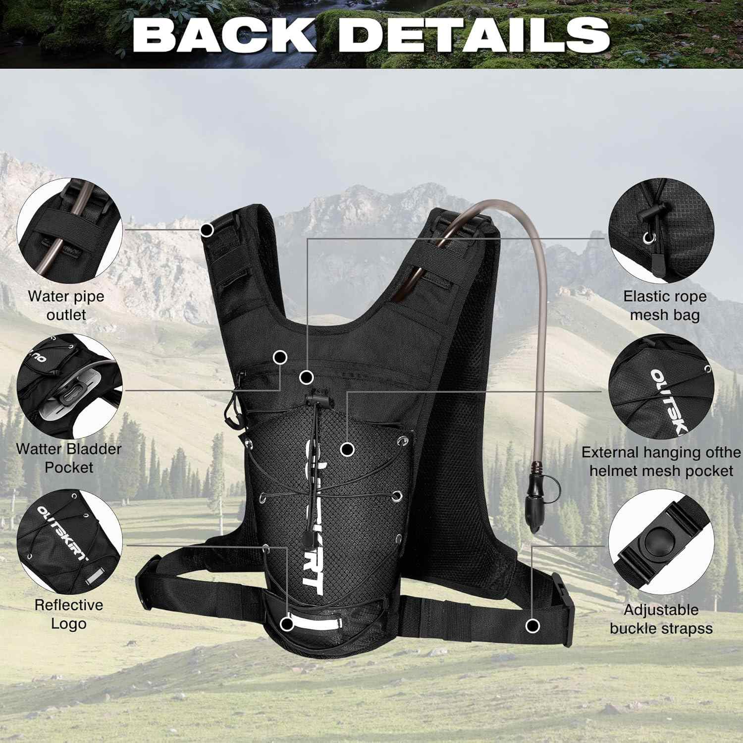 - Lightweight, Durable & Breathable Materials: The backpack with bladder is crafted from rugged 1200D Oxford fabric and breathable mesh panels, the hydration pack balances durability with airflow, you don't feel stuffy running, and the lightweight material won't weigh you down