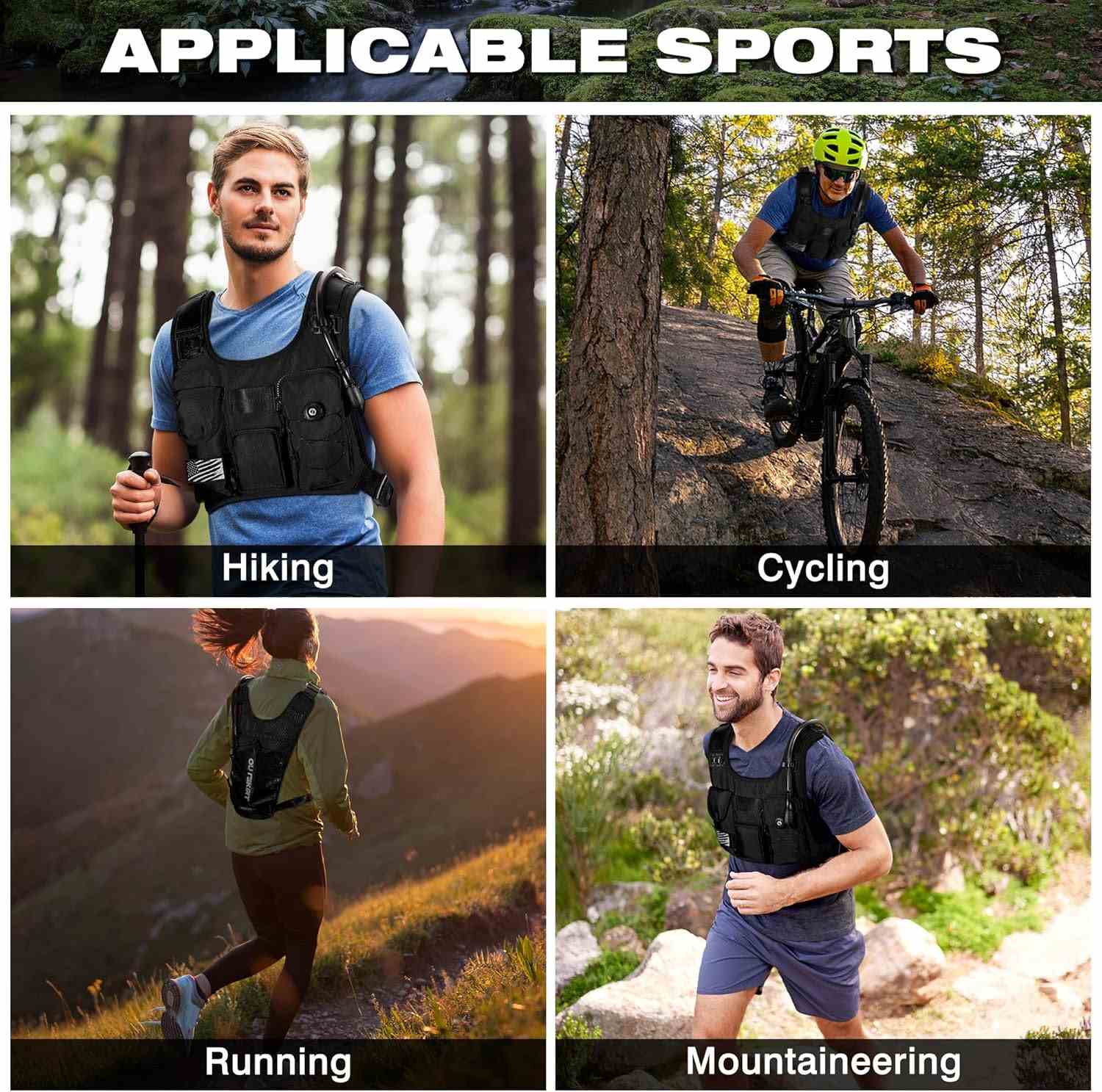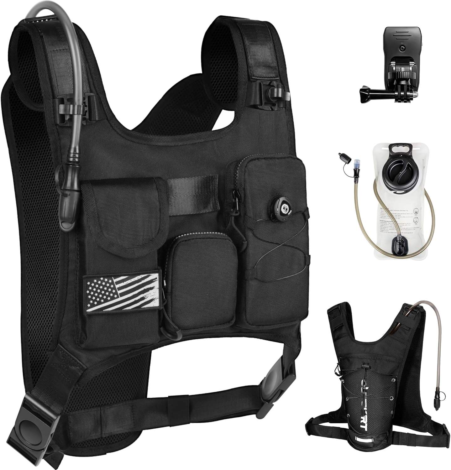 - Innovative GoPro-Ready Chest Strap: Hydration backpack sets itself apart with an exclusive front chest strap designed to hold an included GoPro mount. Capture your adventures hands-free with optimal stability and point-of-view footage. Whether you're trail running, cycling, hiking, or climbing, document your journey effortlessly while staying focused on your performance
