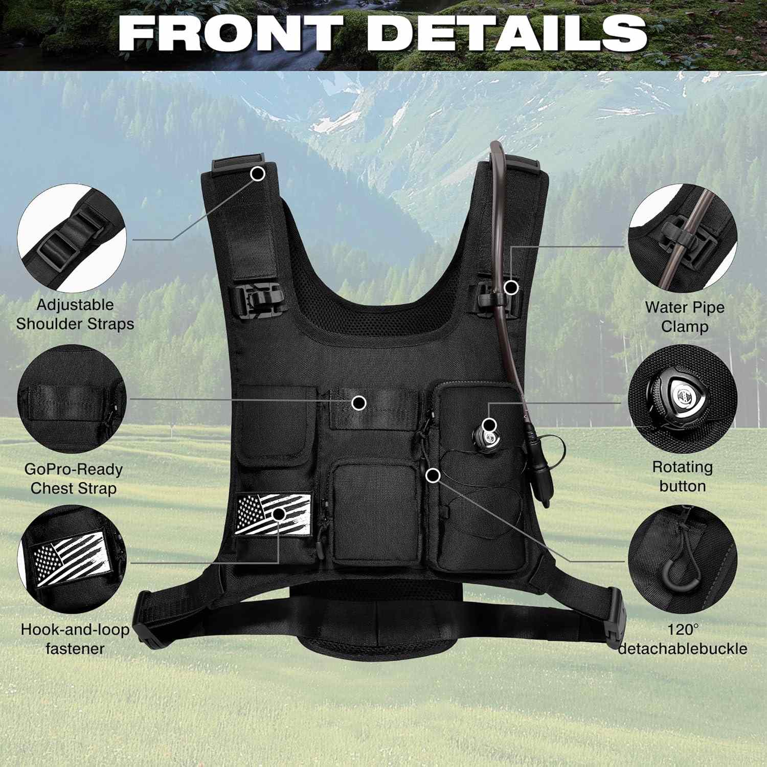 - Multi-Pocket Design: Equipped with multiple front and back pockets to organize your essentials – store your phone, snacks,energy gels, keys, and tactical gear up front, while towels, helmet, and the water bladder fit in the back. Quick and Easy access to pick all your necessaries during running or cycling, get all your gadgets well organized in your front chest pack