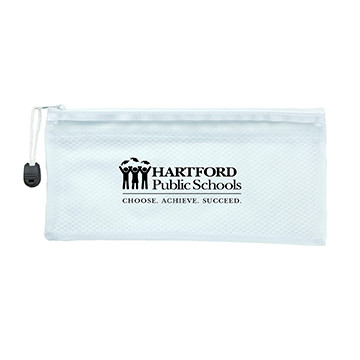 Pouch stores multiple pencils, pens, erasers and other school supplies
